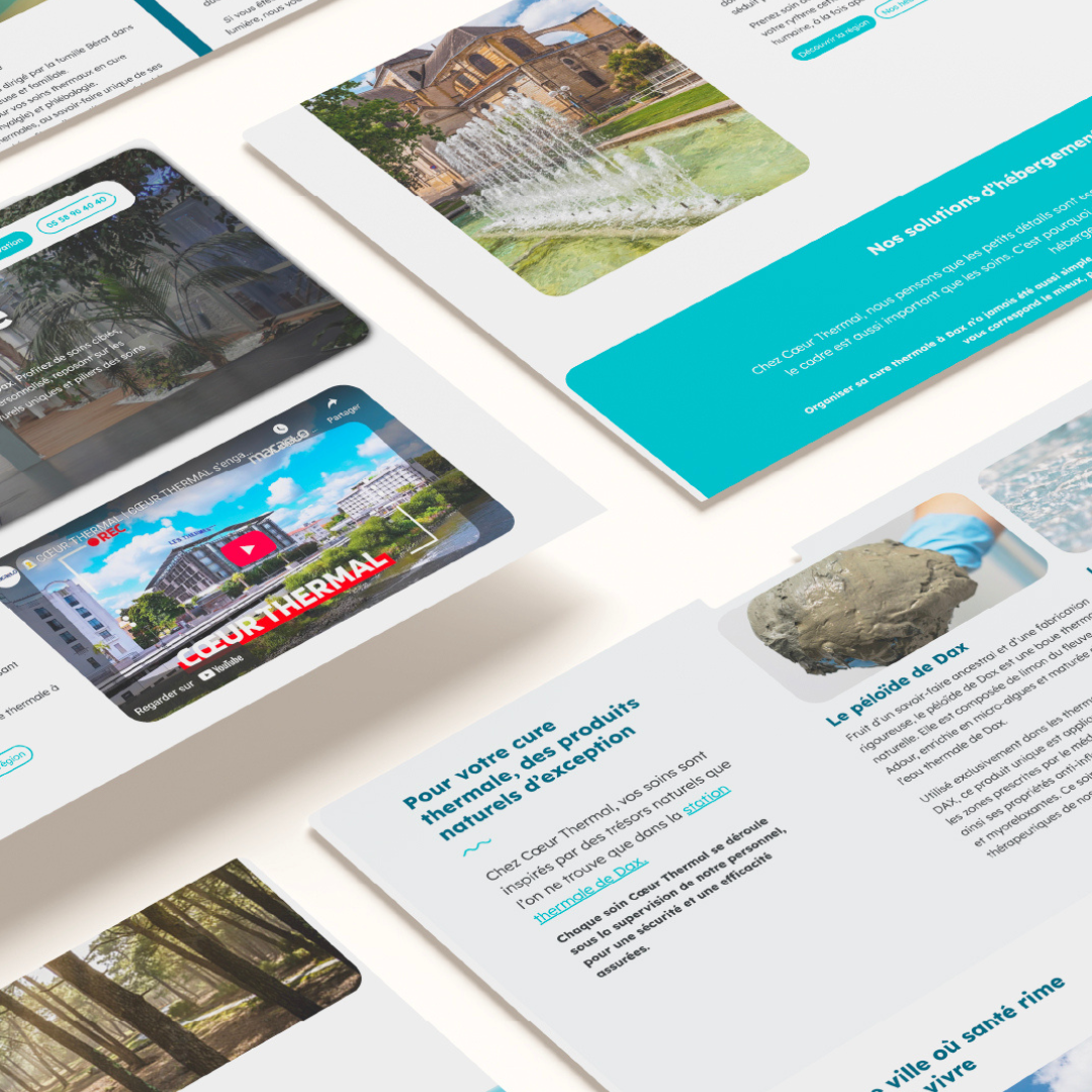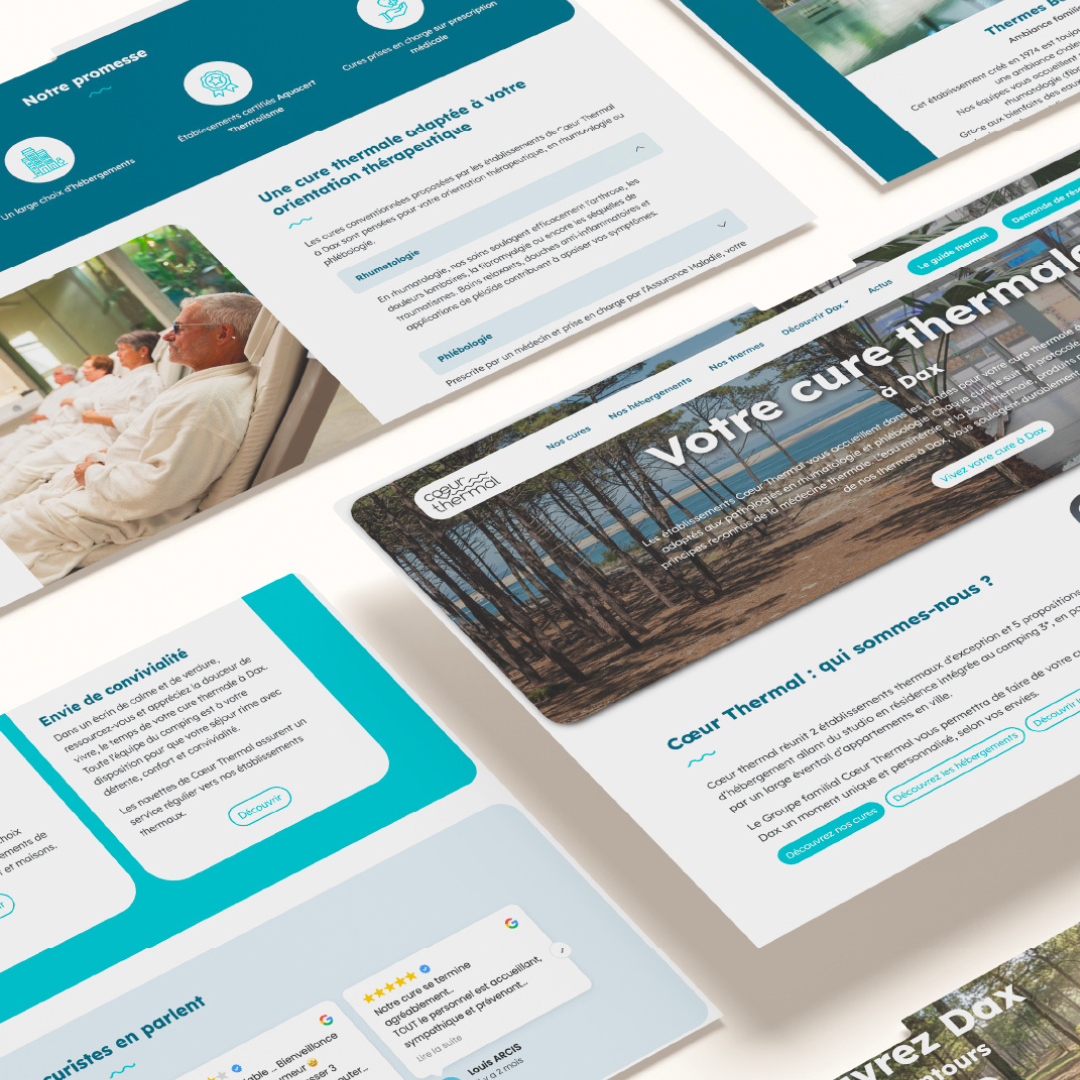 Un site pensé pour rassurer, informer et fluidifier le parcours utilisateur, tout en affirmant Cœur Thermal comme une marque forte, ancrée à Dax, au cœur des Landes.